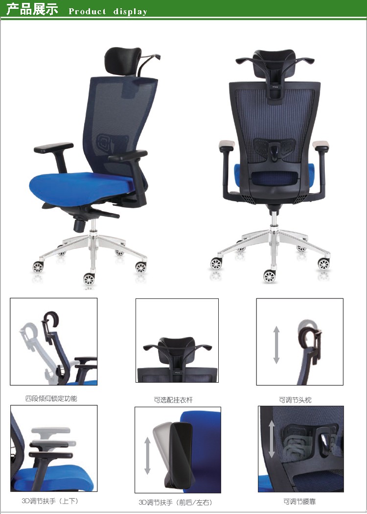 *5段傾仰鎖定機(jī)構(gòu),帶有傾仰松緊調(diào)節(jié),合金腳;