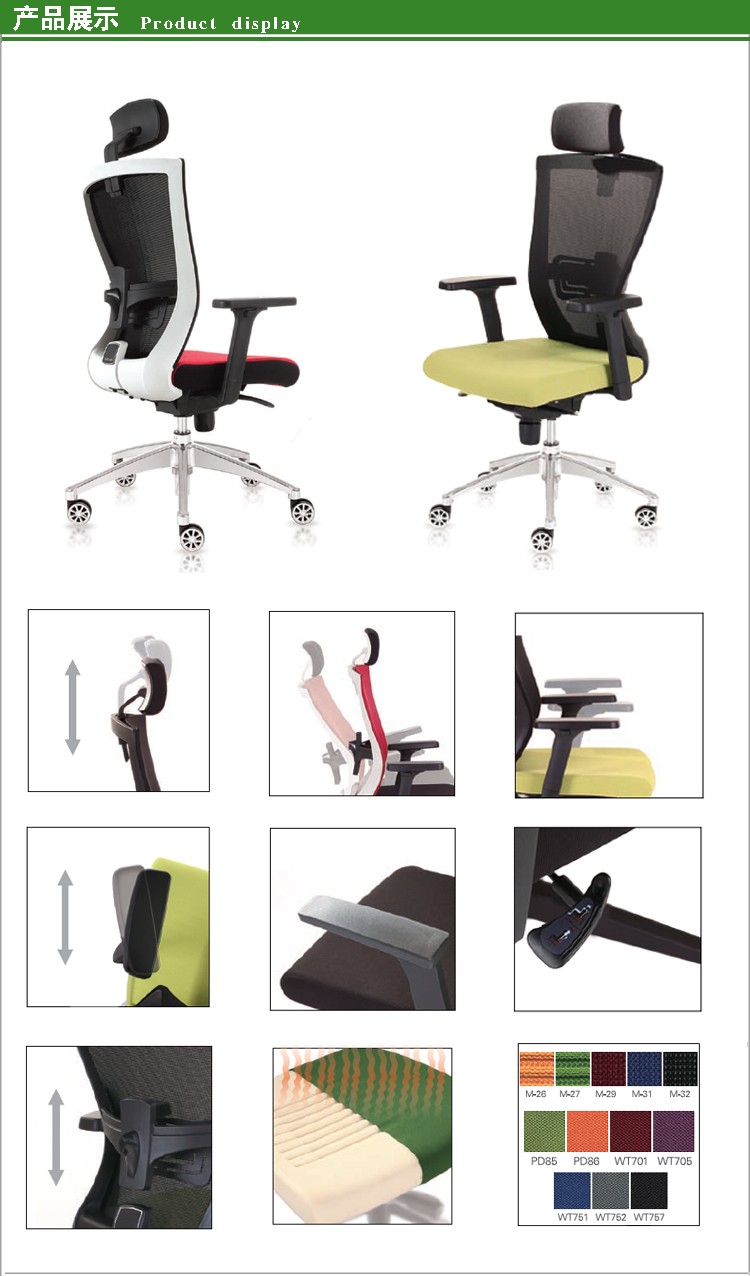 *高強(qiáng)電鍍五星腳架/尼龍五星腳架+優(yōu)質(zhì)尼龍萬向滑輪+高背設(shè)計(jì);